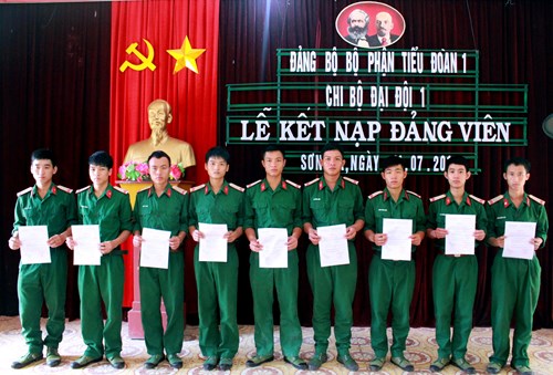 Kết nạp đảng viên tại Chi bộ Đại đội 1, Đảng bộ bộ phận Tiểu đoàn 1, Đảng bộ Quân sự tỉnh Sơn La. Ảnh: Hồng Sáng. |