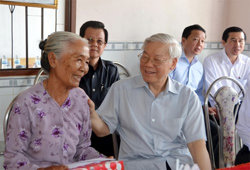 Tổng Bí thư Nguyễn Phú Trọng thăm, tặng quà Bà mẹ Việt Nam anh hùng Đoàn Thị Y.
