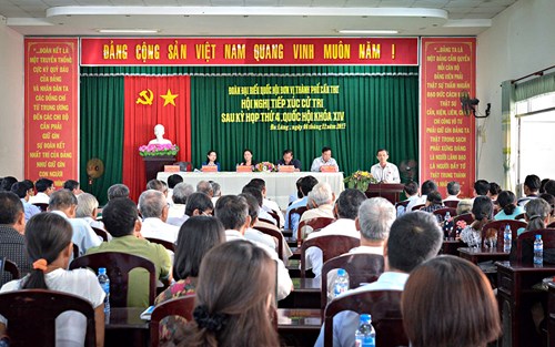 Trong năm 2017, Đoàn ĐBQH TP Cần Thơ phối hợp với Ban Thường trực Ủy ban MTTQ thành phố và các cơ quan, đơn vị, địa phương tổ chức 35 cuộc tiếp xúc cử tri với hơn 4.940 lượt người tham dự, có 146 kiến nghị của cử tri được tổng hợp, gửi tới các cơ quan thẩm quyền giải quyết theo quy định.