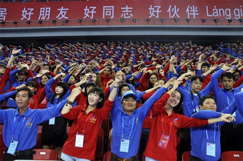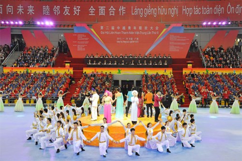 Thanh niên hai nước nắm tay cùng hát chung bài hát về tình hữu nghị Việt - Trung tại Đại hội Liên hoan thanh niên Việt - Trung lần thứ hai, năm 2013, ở Nam Ninh (Trung Quốc).