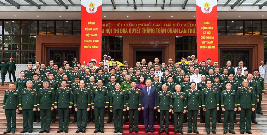 | Tổng Bí thư Tô Lâm và các đại biểu dự Đại hội Thi đua Quyết thắng toàn quân lần thứ XI. Ảnh: VŨ DUY |