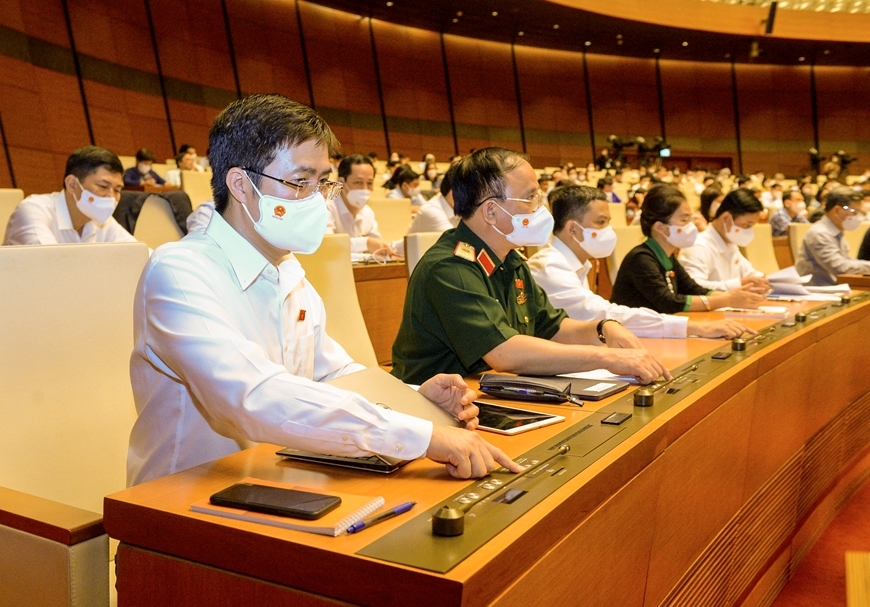 | Các đại biểu bấm nút biểu quyết thông qua nghị quyết. Ảnh: VPQH. |