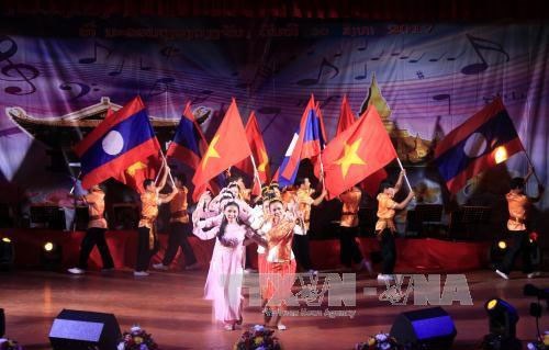 Một tiết mục tại đêm chung kết cuộc thi sáng tác ca khúc ca ngợi quan hệ Lào - Việt Nam ở thủ đô Viêng Chăn ngày 30-8. Ảnh: TTXVN