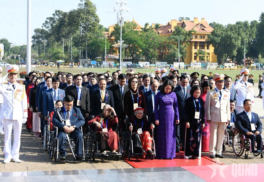 | Đoàn đại biểu dự Đại hội Thi đua yêu nước toàn quốc lần thứ XI vào Lăng viếng Chủ tịch Hồ Chí Minh. Ảnh: VŨ PHONG |