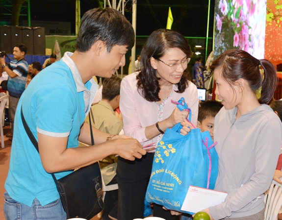 Lãnh đạo TP Hồ Chí Minh tặng quà người dân quận Thủ Đức. Ảnh: Hoàng Thành