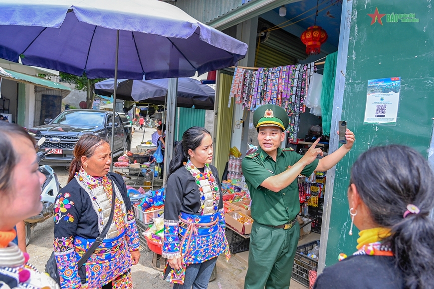 Cán bộ Đồn Biên phòng Vàng Ma Chải (Bộ đội Biên phòng tỉnh Lai Châu) hướng dẫn người dân quét mã QR hòm thư điện tử ẩn danh tố giác tội phạm.