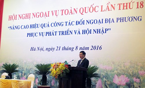 Theo báo cáo của Cục trưởng Cục Ngoại vụ-Bộ Ngoại giao Nguyễn Hoàng Long, kể từ Hội nghị Ngoại vụ toàn quốc lần thứ 17 cách đây hai năm rưỡi, công tác ngoại vụ địa phương đã có những bước phát triển nhanh chóng, thay đổi về chất, ngày càng chuyên nghiệp hóa, tham mưu đắc lực cho lãnh đạo địa phương trong việc triển khai công tác đối ngoại tại địa bàn. Các địa phương đã triển khai tốt các cơ chế hợp tác song phương, cũng như cơ chế liên vùng/liên tỉnh với các đối tác nước ngoài, ký kết mới 119 cặp quan hệ hợp tác địa phương với các đối tác nước ngoài, ký 230 Bản ghi nhớ với các doanh nghiệp, tổ chức nước ngoài. Trong bối cảnh chịu tác động của khủng hoảng kinh tế nhưng công tác vận động viện trợ phi chính phủ nước ngoài của các địa phương vẫn duy trì ở mức khá, mỗi năm giải ngân ước đạt khoảng 300 triệu USD, qua đó đóng góp vào nguồn lực phát triển quan trọng cho địa phương. “Mặc dù kinh tế thế giới còn khó khăn nhưng thu hút đầu tư nước ngoài tại các địa phương vẫn đạt kết quả khả quan, đạt 51,53 tỷ USD. Trong hơn hai năm qua, lượng kiều hối đầu tư về nước tăng đáng kể, đạt khoảng 26 tỷ USD, trong đó tập trung tại Hà Nội, TP Hồ Chí Minh, Phú Thọ, Bà Rịa-Vũng Tàu, Hải Phòng…”, ông Nguyễn Hoàng Long cho hay.