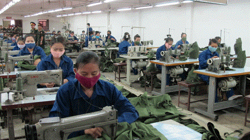 Công nhân phân xưởng may đang sản xuất hàng quân trang phục vụ bộ đội. Ảnh minh họa: qdnd.vn.