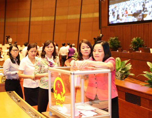Nữ đại biểu Quốc hội Khóa XIV bỏ phiếu bầu các chức danh lãnh đạo Nhà nước. Ảnh: Trọng Đức