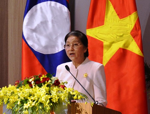 Chủ tịch Quốc hội Lào Pa-ny Ya-tho-tu phát biểu tại Hội thảo “Vai trò của nữ đại biểu Quốc hội trong hoạt động của Quốc hội”. Ảnh: Thùy Dương.