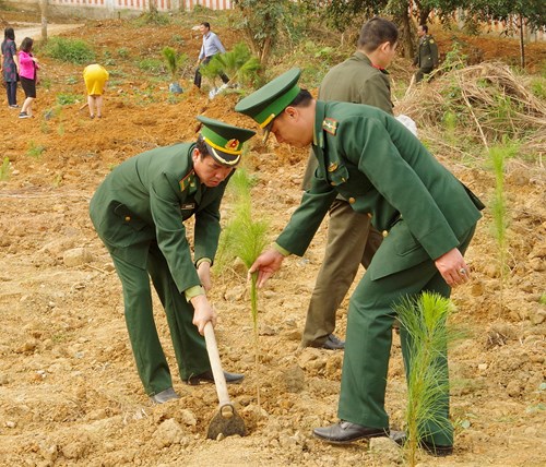 Cán bộ, chiến sĩ Bộ Chỉ huy BĐBP tỉnh Lào Cai tham gia hưởng ứng Tết trồng cây. |