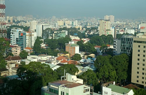 Nhiều khu dân cư, công sở của quận 1, TP Hồ Chí Minh được phủ bóng cây xanh xen lẫn những tòa nhà cao ốc. Ảnh:VŨ QUANG THÁI