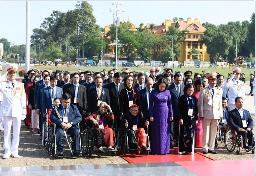 Đoàn đại biểu dự Đại hội Thi đua yêu nước toàn quốc lần thứ XI vào Lăng viếng Chủ tịch Hồ Chí Minh. Ảnh: VŨ PHONG