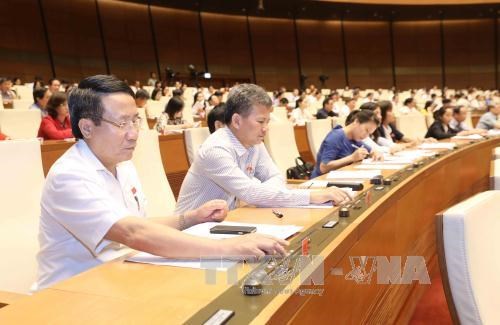 Đại biểu Quốc hội biểu quyết thông qua Luật quản lý, sử dụng vũ khí, vật liệu nổ và công cụ hỗ trợ. Ảnh: TTXVN.