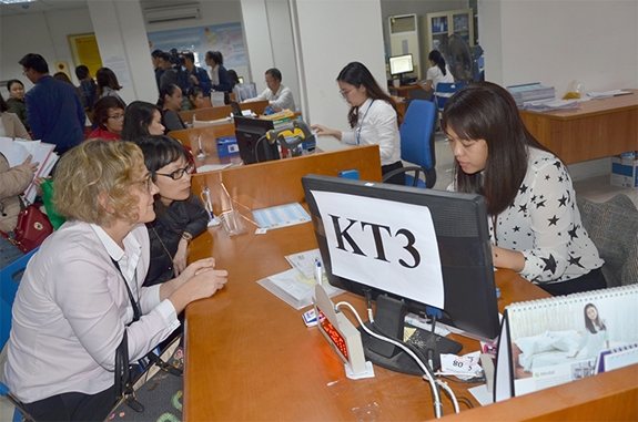 Người dân làm thủ tục nộp thuế tại cơ quan thuế. Ảnh: Anh Việt