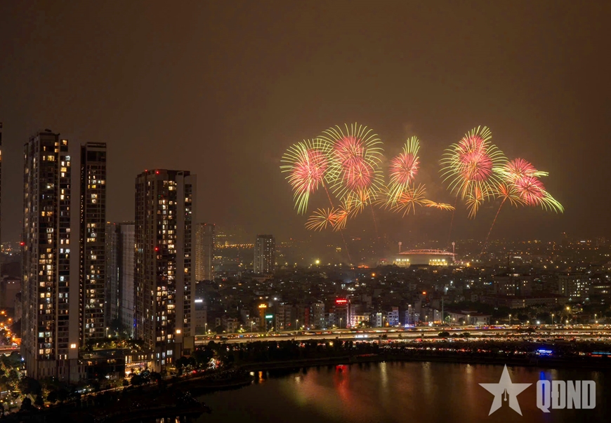 | Màn trình diễn bắn pháo hoa nghệ thuật chào mừng thành công Đại hội lần thứ XIV của Đảng, tối 23-1-2026. Ảnh: TUẤN HUY |