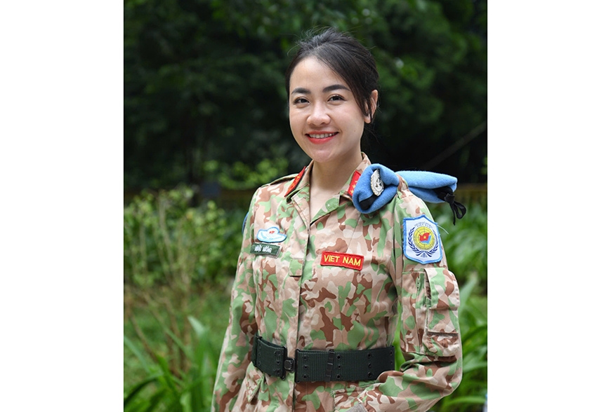 | Đại úy VŨ NHẬT HƯƠNG, Trợ lý Phòng Hợp tác quốc tế, Cục Gìn giữ hòa bình Việt Nam. |
