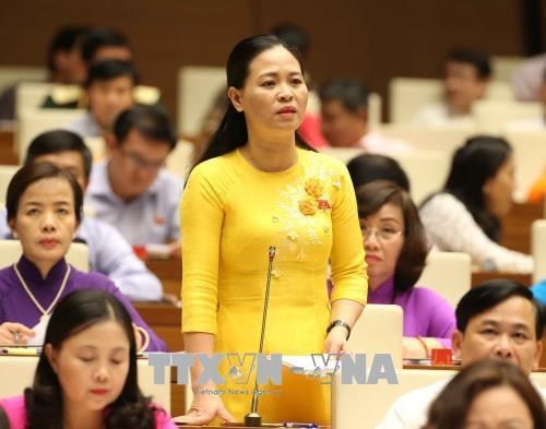 Đại biểu Nguyễn Thị Thu Dung (đoàn Thái Bình) đặt câu hỏi chất vấn. Ảnh: TTXVN |