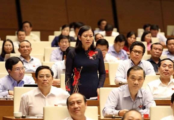 Đại biểu Lê Thị Nga (đoàn Thái Nguyên) chất vấn Bộ trưởng Bộ Lao động-Thương binh và Xã hội. Ảnh: TTXVN |