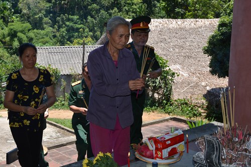 Cán bộ quân đội và nhân dân địa phương dâng hương tưởng nhớ các liệt sĩ hy sinh tại khu vực di tích “Hầm năm cửa”.