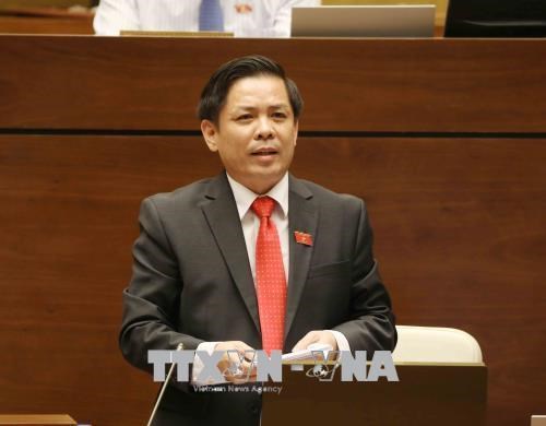 Bộ trưởng Bộ Giao thông vận tải Nguyễn Văn Thể trả lời chất vấn. Ảnh: TTXVN