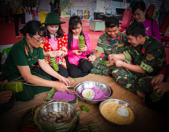 Hội thi gói bánh tét tại Tết quân-dân năm 2020 của LLVT thành phố Cần Thơ.