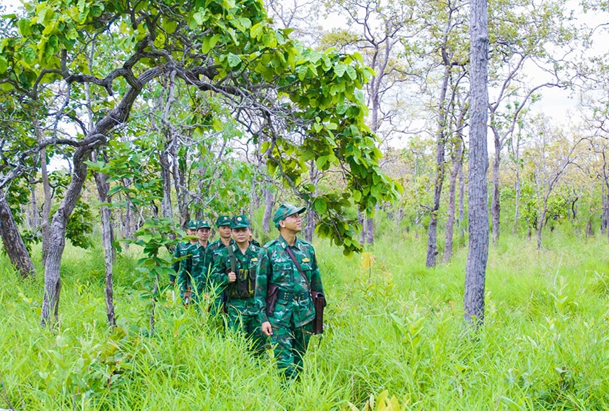 | Đồn Biên phòng Ia Lốp (Bộ đội Biên phòng tỉnh Gia Lai) tuần tra bảo vệ biên giới. Ảnh: QUỐC VINH |