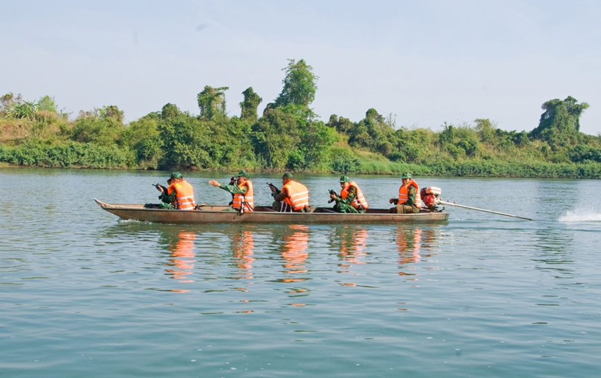 | Đồn Biên phòng Ia O (Bộ đội Biên phòng tỉnh Gia Lai) tuần tra trên sông. Ảnh: QUỐC VINH |