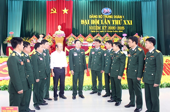 Thiếu tướng Trần Minh Thanh, Chủ nhiệm Chính trị Quân khu trao đổi kinh nghiệm với các đại biểu dự Đại hội Đảng bộ Trung đoàn 1 (Sư đoàn 324). |