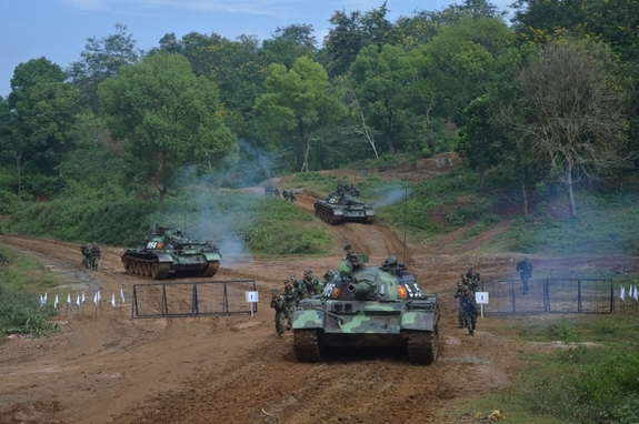 Lữ đoàn Xe tăng 201 thực hành diễn tập thực binh. Ảnh: qdnd.vn.