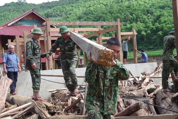 Bộ đội Biên phòng tỉnh Quảng Bình giúp dân xây dựng nhà, ở bản K-Ai (Dân Hóa, Minh Hóa, Quảng Bình). Ảnh: TRUNG HIẾU |
