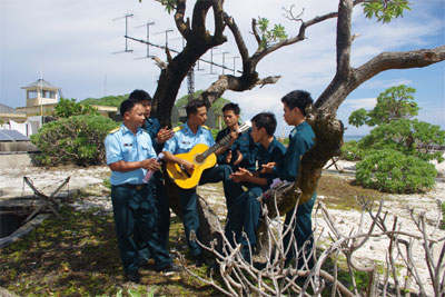 Sau những phút “a lô tình yêu”, cán bộ, chiến sĩ Trạm Ra-đa 21 ở đảo Song Tử Tây lại quây quần đàn, hát và kể cho nhau nghe chuyện ở hậu phương.