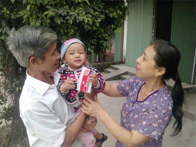 Ông Phạm Minh Thắng và bà Trịnh Thị Lan cùng với cháu nội.
