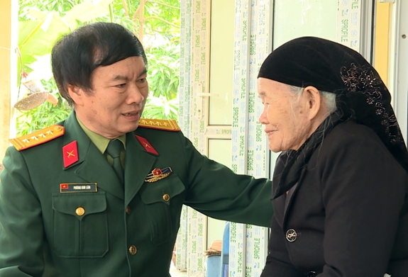 Đại tá Phùng Kim Lân thăm hỏi sức khỏe bệnh nhân.