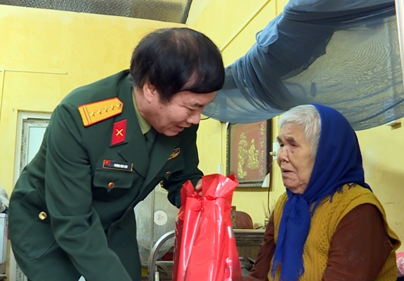 Đại tá Phùng Kim Lân tới tận giường thăm và tặng quà những bệnh nhân nặng.