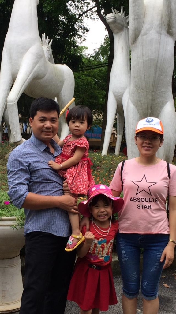 Vợ chồng Trung úy QNCN Vũ Thanh Hải cùng hai con gái. Ảnh do nhân vật cung cấp