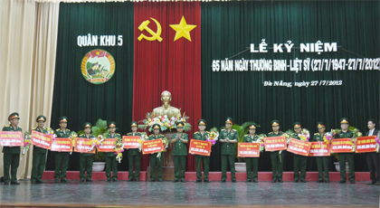 Trong dịp kỷ niệm 65 năm Ngày Thương binh-Liệt sĩ, Bộ Tư lệnh Quân khu 5 đã tiếp nhận hơn 4,3 tỷ đồng ủng hộ cho quỹ “Đền ơn đáp nghĩa” từ 31 đơn vị của quân khu, các nhà tài trợ trong, ngoài quân đội...