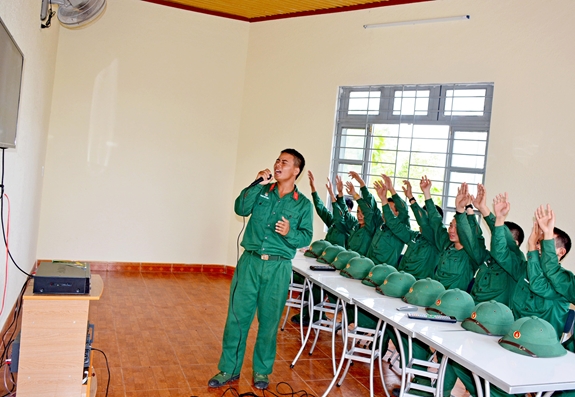 Các chiến sĩ hát karaoke tại Câu lạc bộ quân nhân của đơn vị.