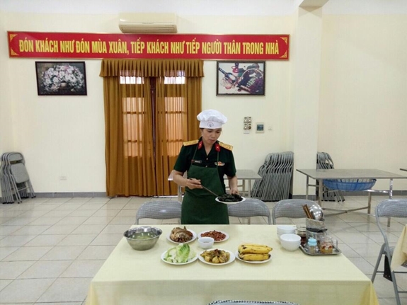Với đặc thù là bếp ăn cao cấp, đối tượng phục vụ đa dạng, chủ yếu là cán bộ, sĩ quan cao cấp của toàn quân và Quân đội nhân dân Lào, Quân đội Hoàng gia Campuchia. Do đó, tiêu chuẩn chế độ ăn khác nhau, yêu cầu và cách chế biến cũng đòi hỏi thay đổi hợp lý theo từng đối tượng… Vì vậy, Đại úy QNCN Nguyễn Thị Liên luôn suy nghĩ, làm thế nào để cán bộ, quân nhân có bữa ăn ngon sạch sẽ và an toàn. Suy nghĩ và hành động, chị Liên luôn chủ động tìm cách chế biến, cải tiến món ăn sao cho vừa giàu dinh dưỡng, vừa hấp dẫn, tạo cảm giác mát mắt, ngon miệng.