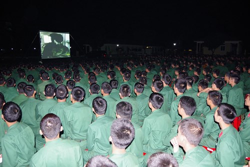 Chiến sĩ mới các đơn vị tỏ ra rất thích thú với chương trình chiếu phim màn ảnh rộng. |