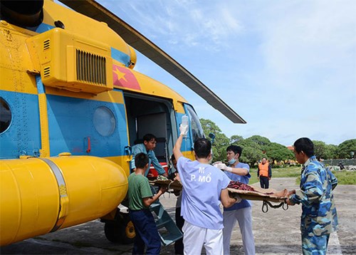 Được sự nhất trí của cấp trên, 6 giờ 35 phút ngày 7-11, máy bay trực thăng Mi-171 của Trung đoàn 917 do Trung tá Ngô Hồng Sơn, Phó trung đoàn trưởng, lái chính, cùng các thành viên tổ bay xuất phát từ Sân bay Biên Hòa chở ê-kíp quân y của Bệnh viện Quân y 175 ra đảo Song Tử Tây để chuyển bệnh nhân Phan Hoàng Dương về đất liền cấp cứu và điều trị. Sau hành trình 4 giờ, máy bay đã hạ cánh xuống đảo Song Tử Tây. Các bác sĩ nhanh chóng kiểm tra tình trạng bệnh nhân, tiến hành hội chẩn, sơ bộ kết luận bệnh nhân bị xuất huyết tiêu hóa mức độ nặng, mất máu nhiều, hôn mê sâu và lập tức được đưa lên máy bay chuyển về Bệnh viện Quân y 175 chữa trị. Trước lúc rời đảo, ông Phan Văn Thép, 53 tuổi, bố của bệnh nhân Dương nắm chặt tay bác sĩ Đặng Xuân Dũng, xúc động bày tỏ: Con tôi bị bệnh nặng trên biển, may nhờ các bác sĩ quân y kịp thời cấp cứu, lại được quân đội điều máy bay ra tận đảo đưa về đất liền cứu chữa. Tình cảm và nghĩa cử cao đẹp của Bộ đội Cụ Hồ gia đình tôi mãi mãi khắc ghi.