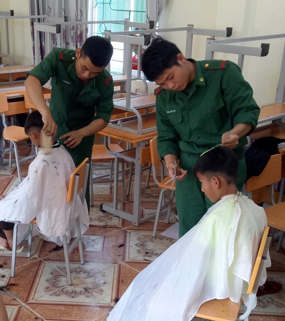 Hằng tuần, vào chiều thứ 5 hoặc thứ 6, đoàn thanh niên cử 2-3 đồng chí biết cắt tóc, biết nói tiếng người dân địa phương về trường tổ chức cắt tóc và tuyên truyền giáo dục các nội dung về 5 điều Bác Hồ dạy thiếu niên, nhi đồng, để các cháu hiểu, làm theo. Mỗi tuần, đồn tổ chức cắt tóc cho 15-20 học sinh nam; đến hết tháng 5-2019, cán bộ, chiến sĩ, đoàn viên thanh niên của đồn đã cắt tóc cho tổng số hơn 1.180 lượt học sinh nam.