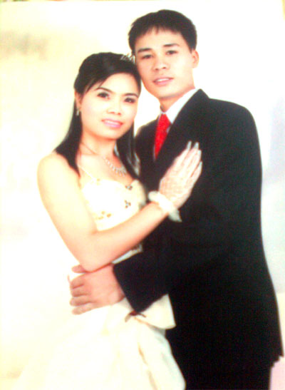Hoài Nam và Thu Huần rạng ngời trong ngày cưới. Ảnh do nhân vật cung cấp