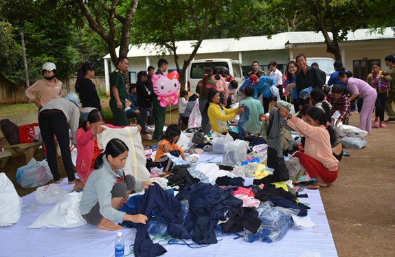 Thiếu tá Đỗ Việt Hồng, Trợ lý Chính trị Học viện Quân y cho biết: Hơn 3 tháng qua, Cơ quan Chính trị, các tổ chức quần chúng của Học viện đã tổ chức quyên góp được hơn 1.000 bộ quần áo, giày, dép, đồ dùng cá nhân… đem theo tặng cho đồng bào. Chính quyền địa phương đã thông báo rộng rãi cho người dân trong xã đến nhận quà tặng.