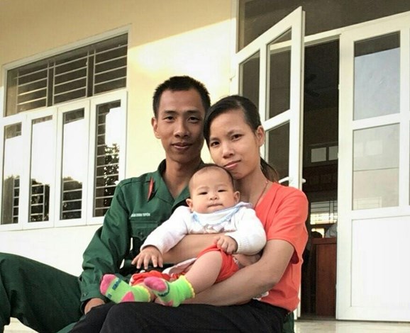 Vợ và con Binh nhì Trần Danh Tuyên trong một lần lên thăm đơn vị. |