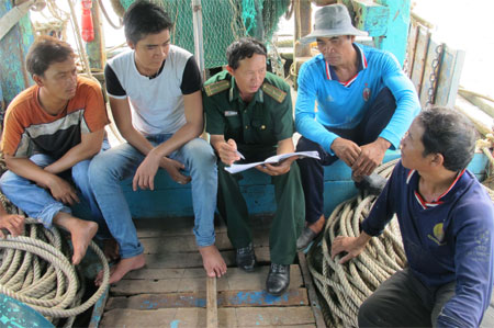 Đại tá Dương Đình Hoàn, Phó chính ủy BĐBP tỉnh, bổ sung: Định kỳ, đơn vị phối hợp với các ban, ngành tổ chức tuyên truyền pháp luật, tập huấn TK, CH, CN cho ngư dân, nhất là về ý thức phòng, chống, giảm nhẹ thiên tai, chấp hành pháp luật, quy định an toàn. BĐBP còn xây dựng tổ ngư dân đoàn kết; tham mưu cho cấp ủy, chính quyền địa phương thực hiện nghiêm quy định đăng ký, kiểm định, kiểm soát phương tiện tàu, thuyền; tổ chức quản lý, huấn luyện phát huy hiệu quả "4 tại chỗ” (chỉ huy, lực lượng, phương tiện, hậu cần tại chỗ). Nhờ đó, BĐBP thực sự là điểm tựa tin cậy, giúp ngư dân yên tâm bám biển làm ăn và tham gia bảo vệ chủ quyền biển, đảo Tổ quốc.