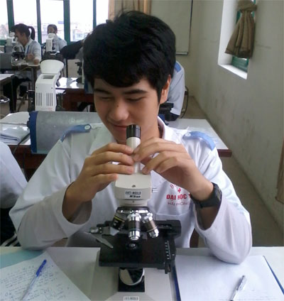 Trần Thanh Tùng trong buổi thực hành tại Trường Đại học Y Hải Phòng. Ảnh: Đức Dục