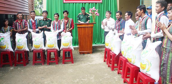 Binh đoàn 16 tặng quà cho các hộ S’tiêng nghèo xã Tân Thành, huyện Bù Đốp, tỉnh Bình Phước.