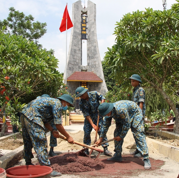 Cán bộ, chiến sĩ Lữ đoàn 28 giúp tu sửa Nghĩa trang Liệt sĩ xã Đồng Tâm (Mỹ Đức, Hà Nội). |