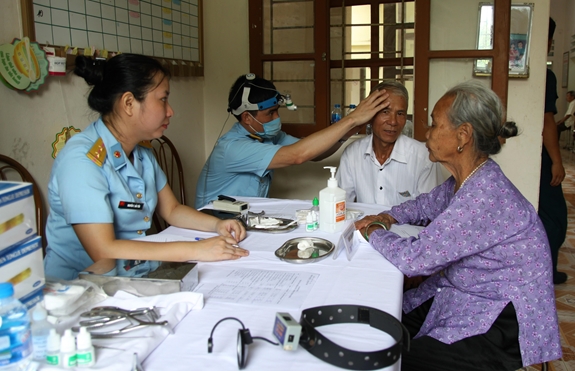 Thầy thuốc Viện Y học Phòng không-Không quân khám bệnh, tư vấn sức khỏe miễn phí cho người có công ở xã Đồng Tâm (Mỹ Đức, Hà Nội). |